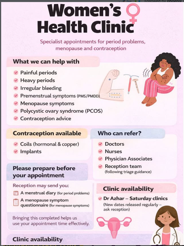 Dr Azhar is running Women’s Health Clinics which provide help surrounding periods, menopause and contraception.